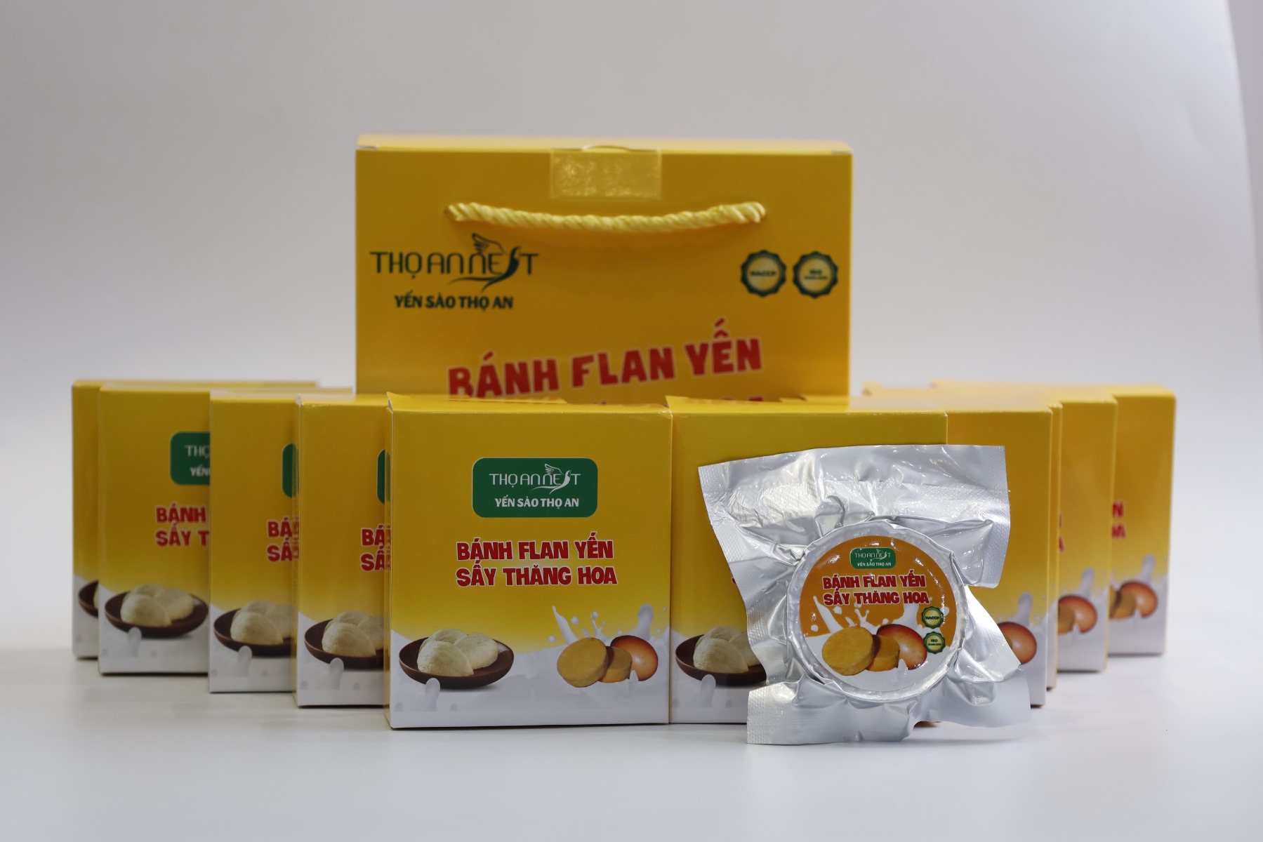 Để giải quyết bài toán đó, đồng thời nâng tầm món ăn vặt lên một đẳng cấp mới, bánh flan yến sấy thăng hoa đã ra đời. Mang trong mình tinh túy của yến sào nguyên chất cùng công nghệ hiện đại, siêu phẩm này tại Yến Sào Thoan chắc chắn sẽ làm hài lòng những thực khách khó tính nhất.